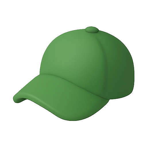 Stylized 3D rendering of a green baseball cap, showcasing a smooth surface and minimalist design, ideal for fashion or merchandise applications.