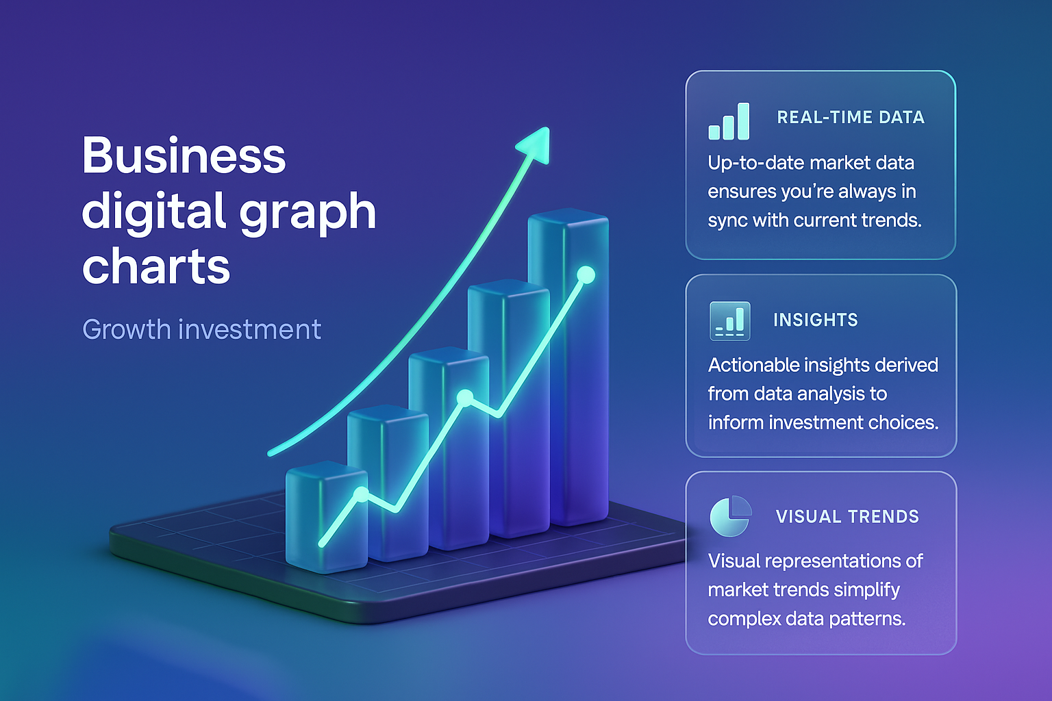 /Collection: /by davooda/Type: PNG/A vibrant 3D digital graph chart illustrating growth trends in the stock market. Features a smooth gradient background and layered visual elements enhancing depth and clarity.