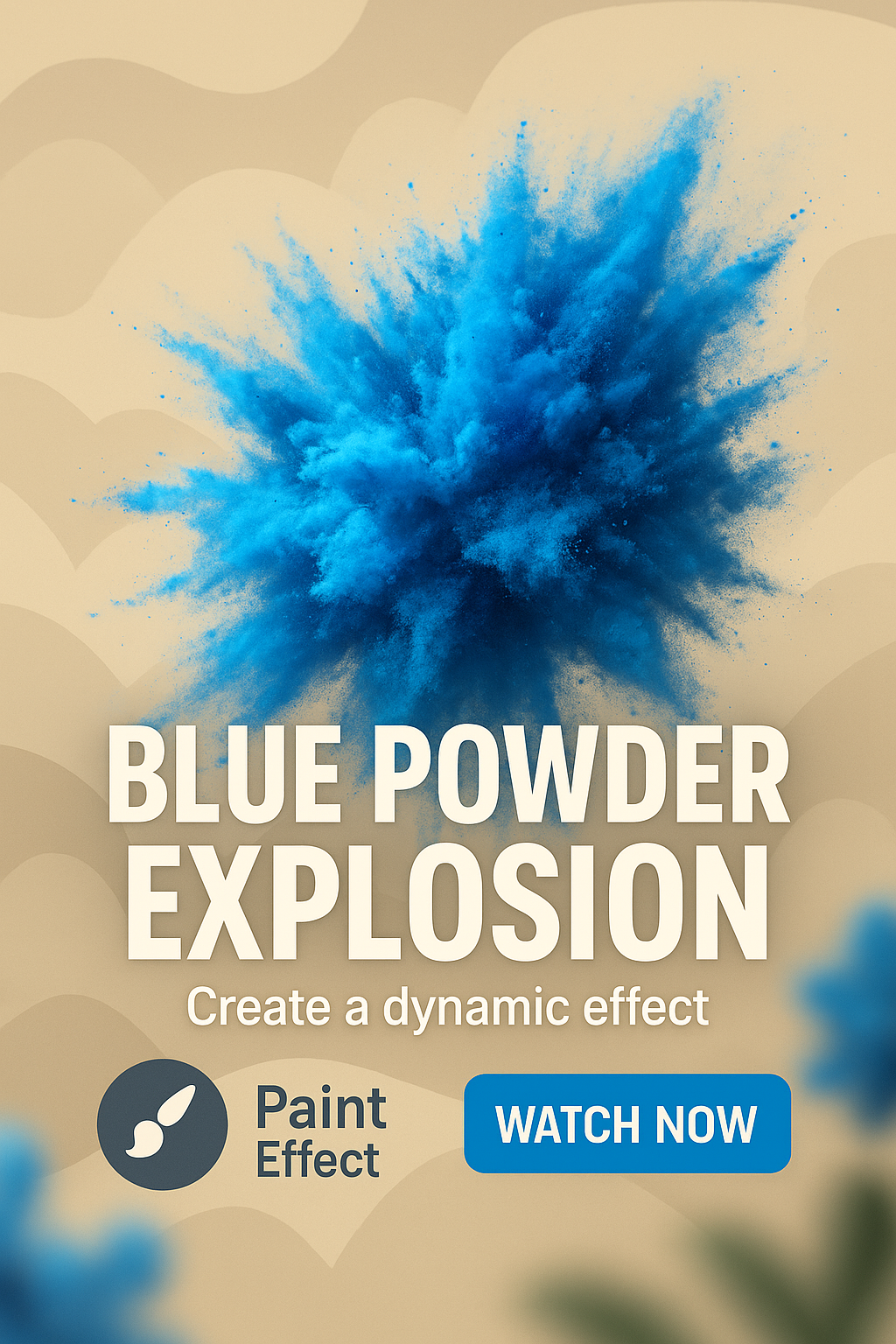 Vibrant promotional graphic showcasing a blue powder explosion effect, designed for digital marketing and creative projects. The modern layout and bold typography make it suitable for social media and advertising.