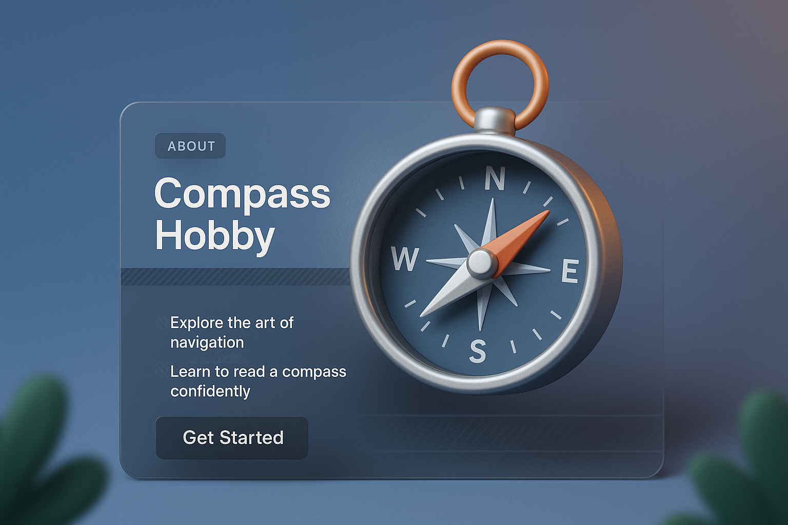 A visually appealing 3D compass illustration surrounded by a smooth gradient background. The design includes a dark panel with informative text about navigating using a compass.