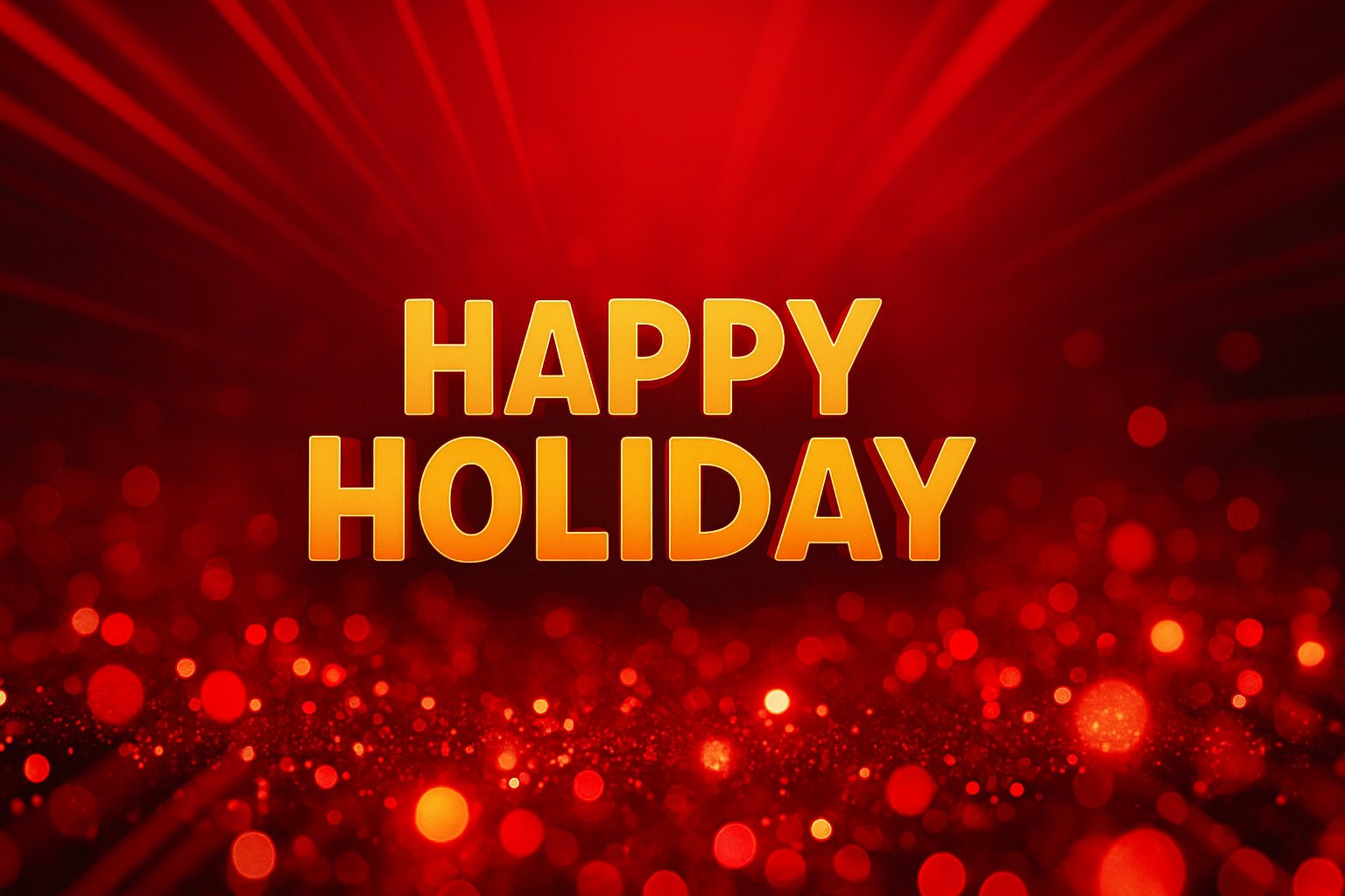 /Collection: /by davooda/Type: PNG/An energetic red background featuring sparkling bokeh lights and a bold 'HAPPY HOLIDAY' text. The dynamic rays radiate from the center, creating a festive atmosphere perfect for celebrations.