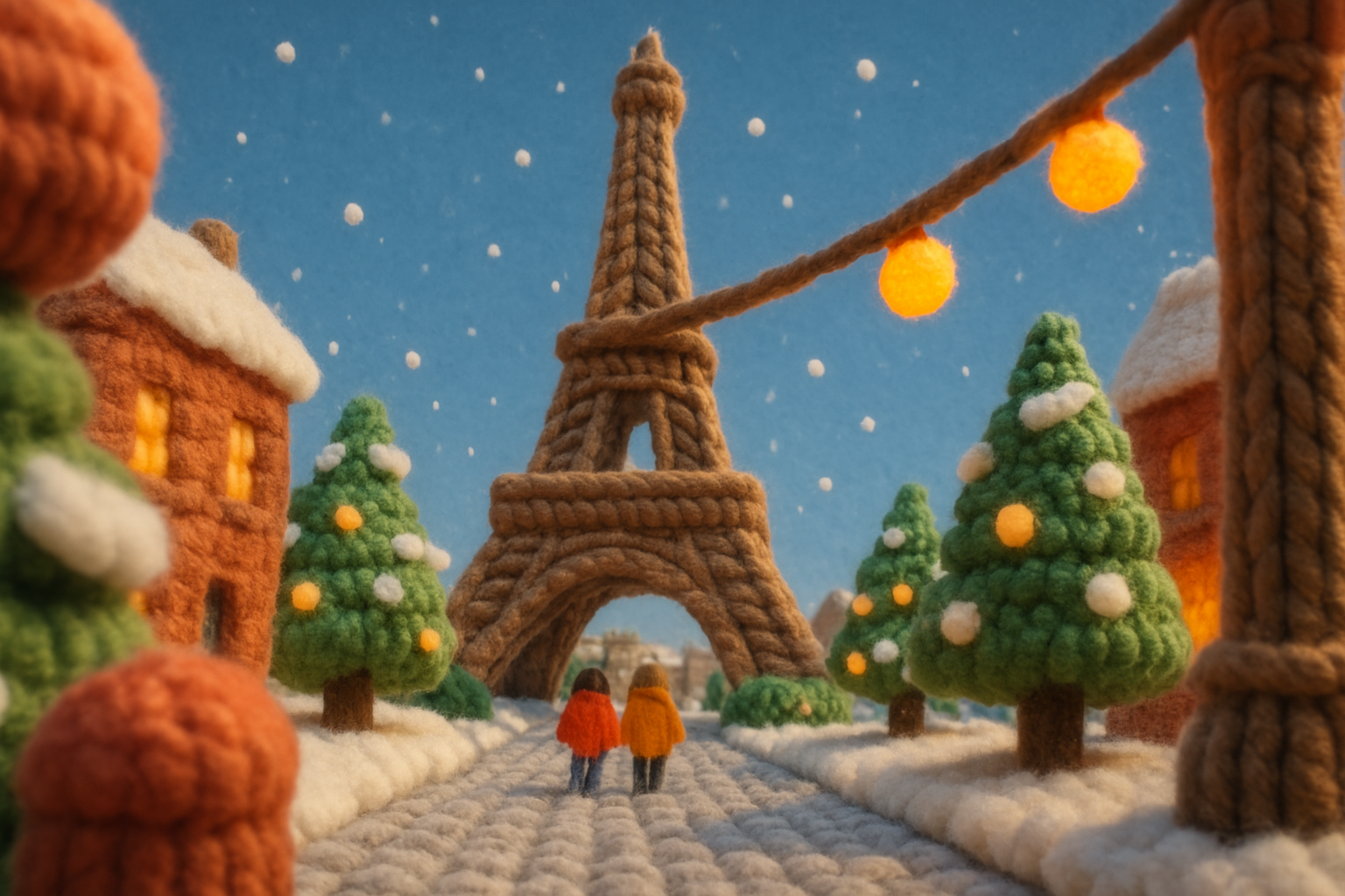 Whimsical Woolen Eiffel Tower Scene in Paris