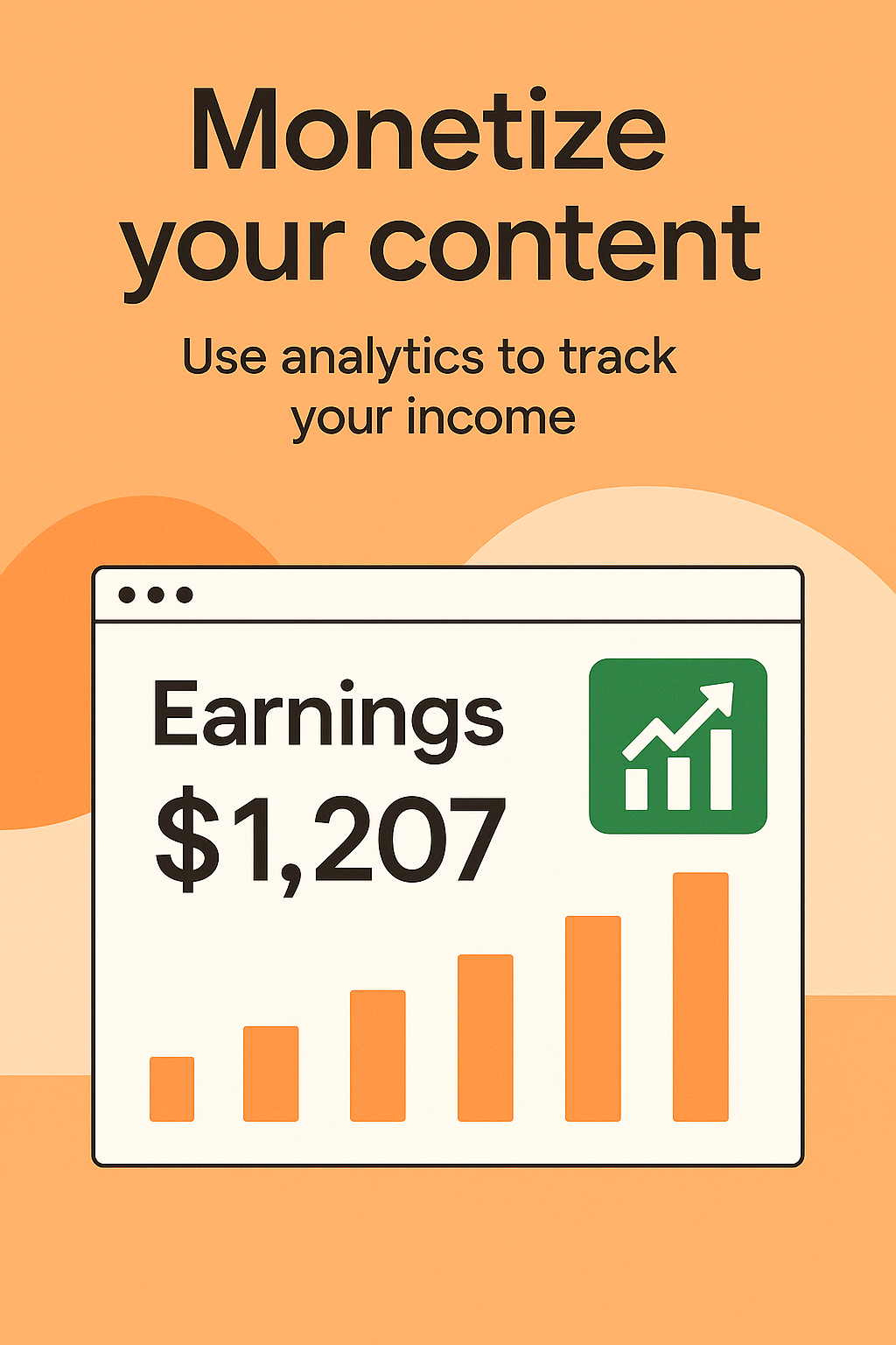 Informative graphic illustrating income tracking through analytics, featuring a modern design with engaging visuals, ideal for content creators and marketers.