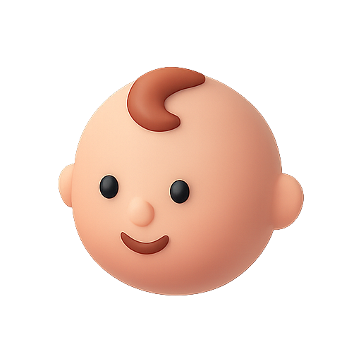 A charming, simplistic cartoon-style illustration of a baby face, featuring rounded features and a friendly expression, ideal for children's products or parenting-related content.