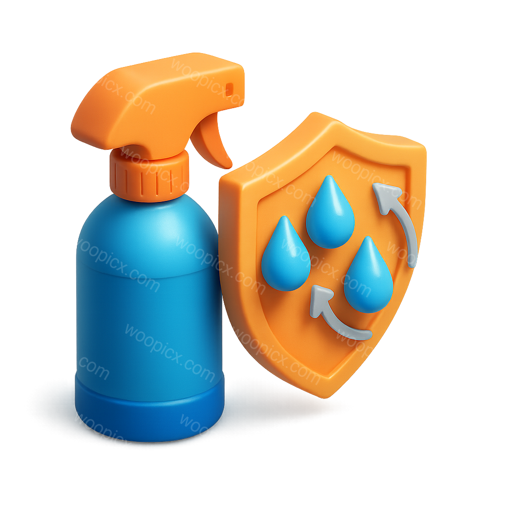 A 3D icon depicting a spray bottle alongside a shield symbol, representing nano coating repellent technology. The design features vibrant colors and a glossy finish, enhancing its visual appeal.