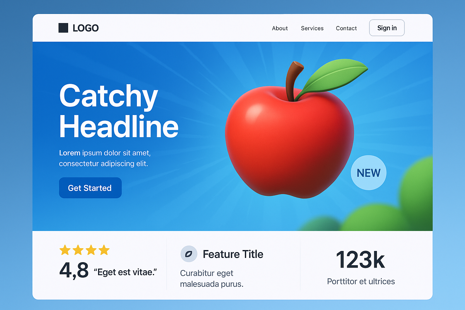 Dynamic Landing Page Design Featuring a Fresh Ripe Apple