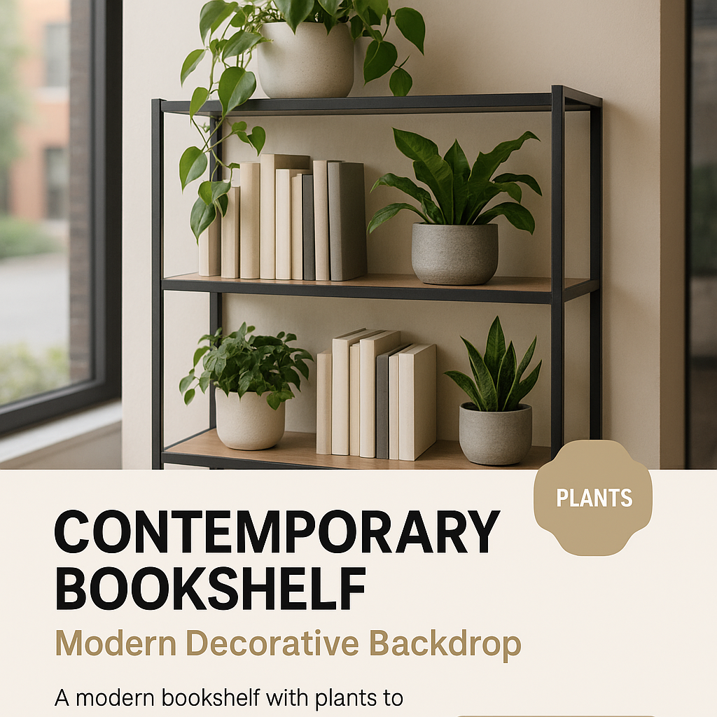Contemporary Bookshelf with Plants for Stylish Office Decor