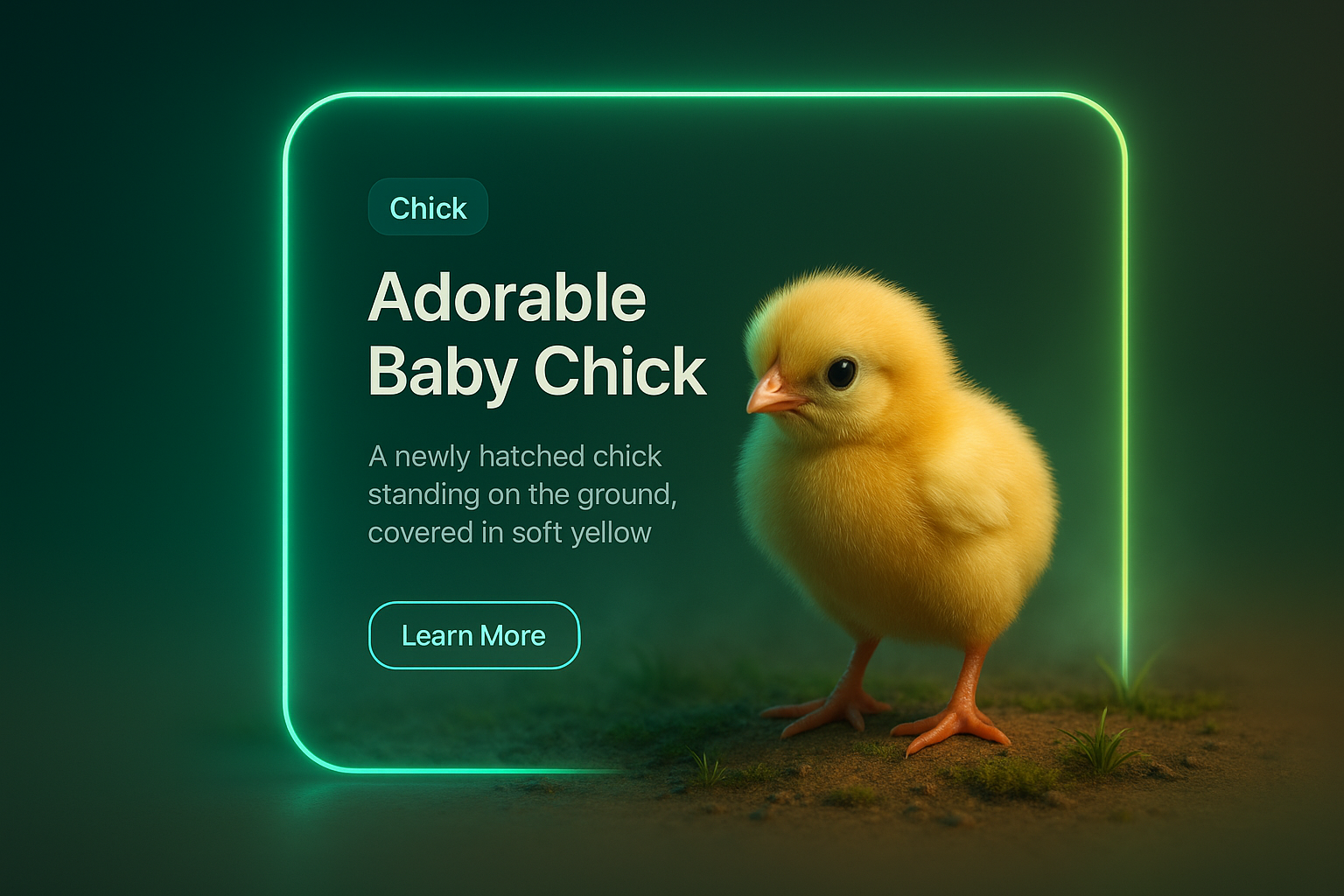 /Collection: /by davooda/Type: PNG/A charming 3D depiction of a newly hatched chick standing on soft ground with neon accents. The scene features a smooth gradient background and glowing elements, enhancing its realism.