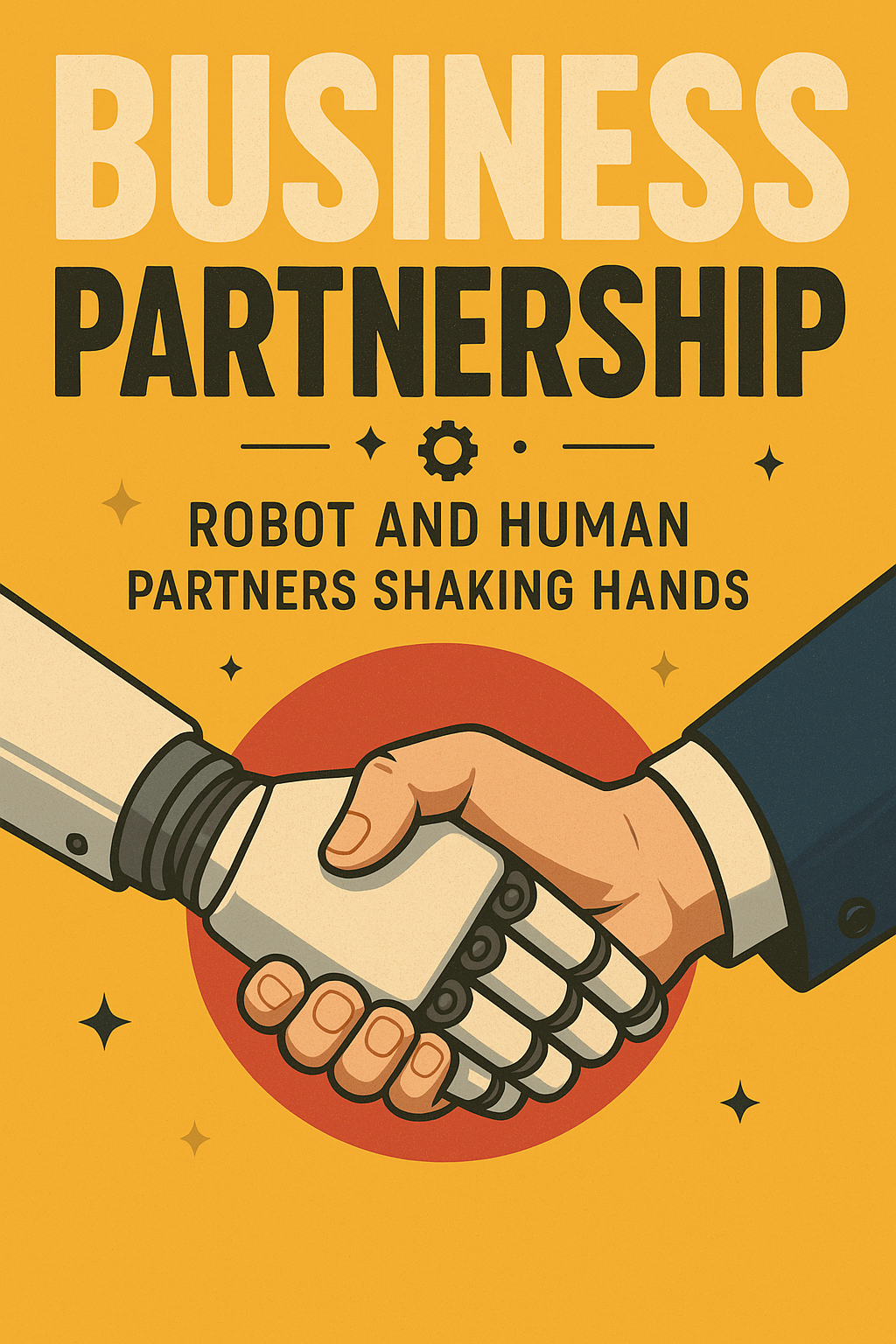 /Collection: /by davooda/Type: PNG/A creative illustration depicting a handshake between a human hand and a robotic hand, symbolizing collaboration between technology and humanity. Suitable for business or tech-related contexts.