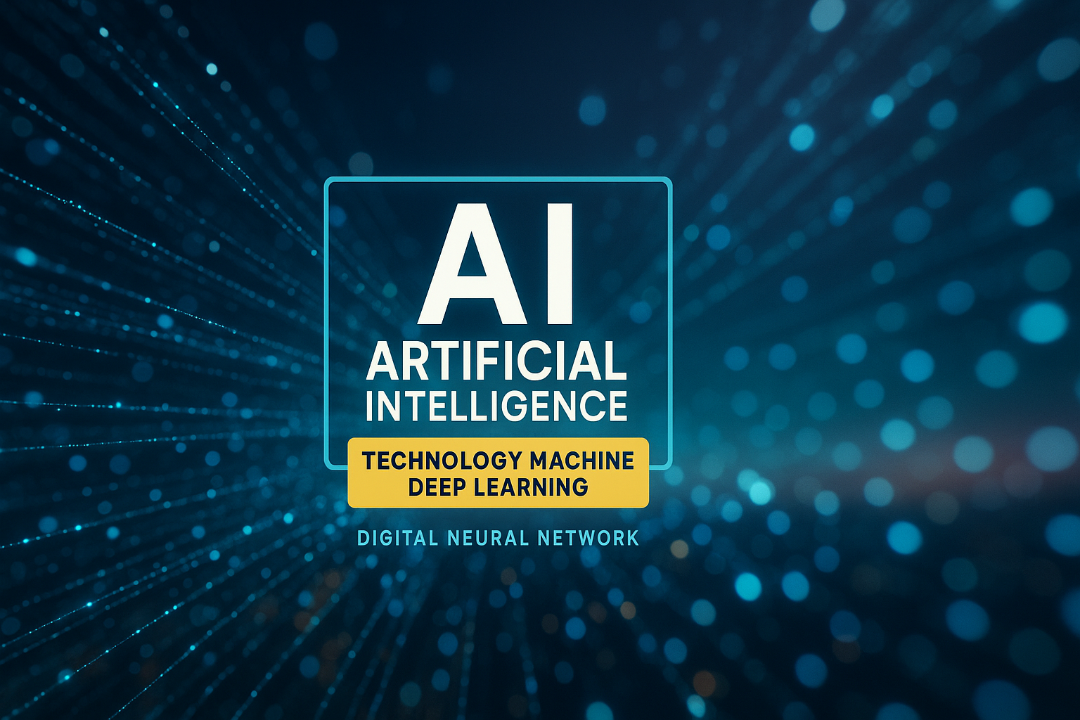 /Collection: /by davooda/Type: PNG/A visually engaging graphic focused on artificial intelligence, featuring a sleek design with bokeh effects and modern typography. Ideal for tech-related presentations or marketing.