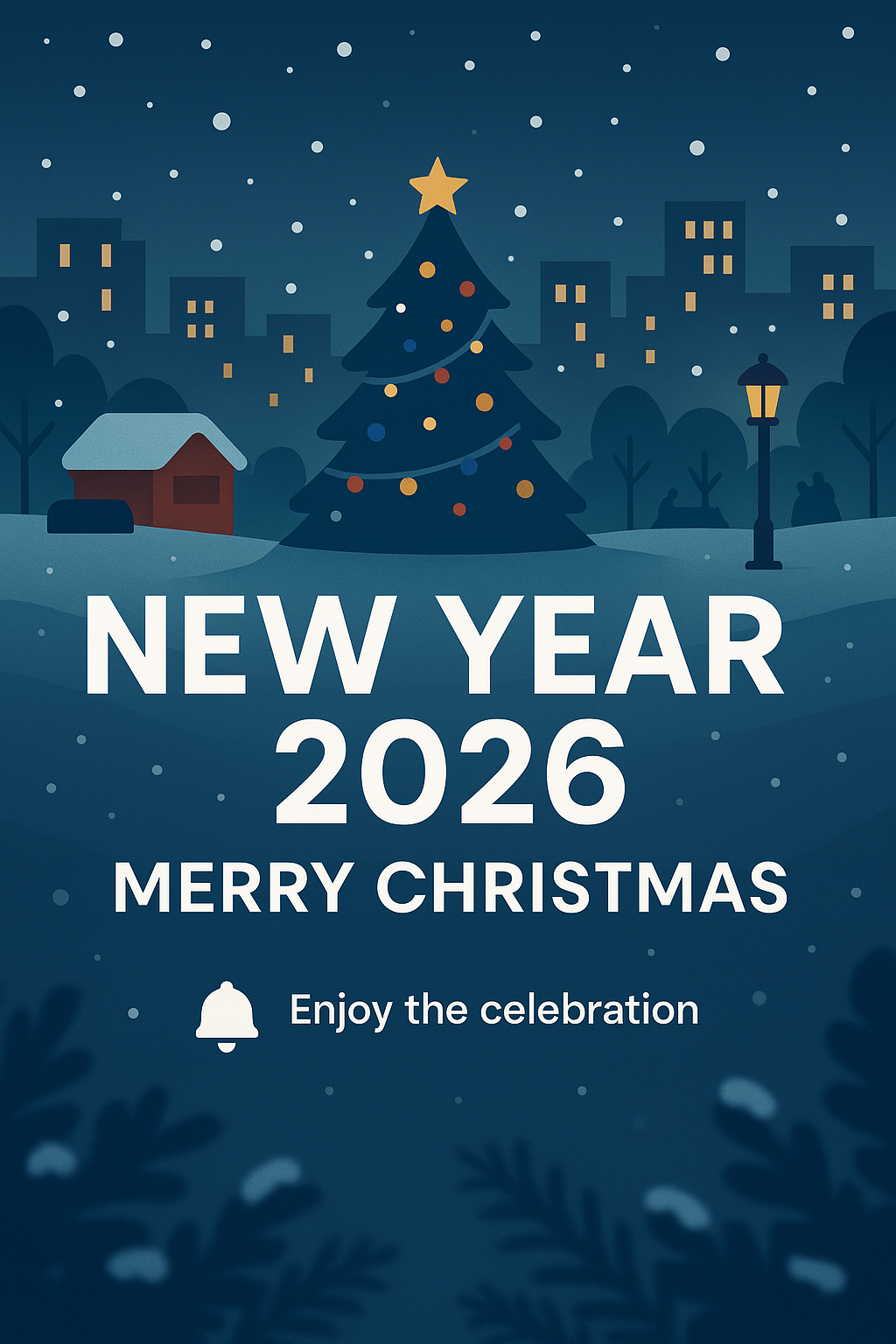 Festive Holiday Graphic Featuring Christmas Tree and New Year Celebration