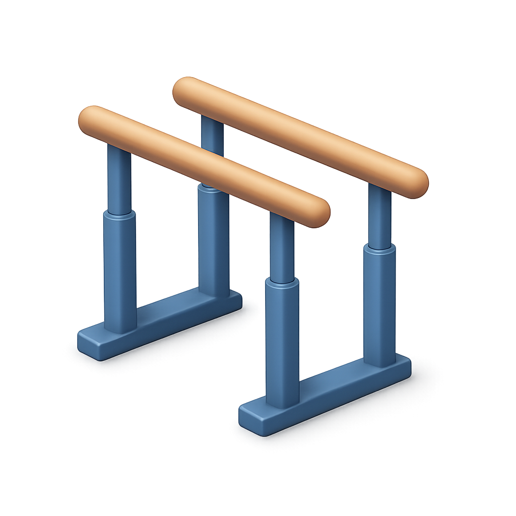 A visually appealing 3D icon of parallettes, featuring wooden bars and blue supports, ideal for fitness and exercise-themed applications.