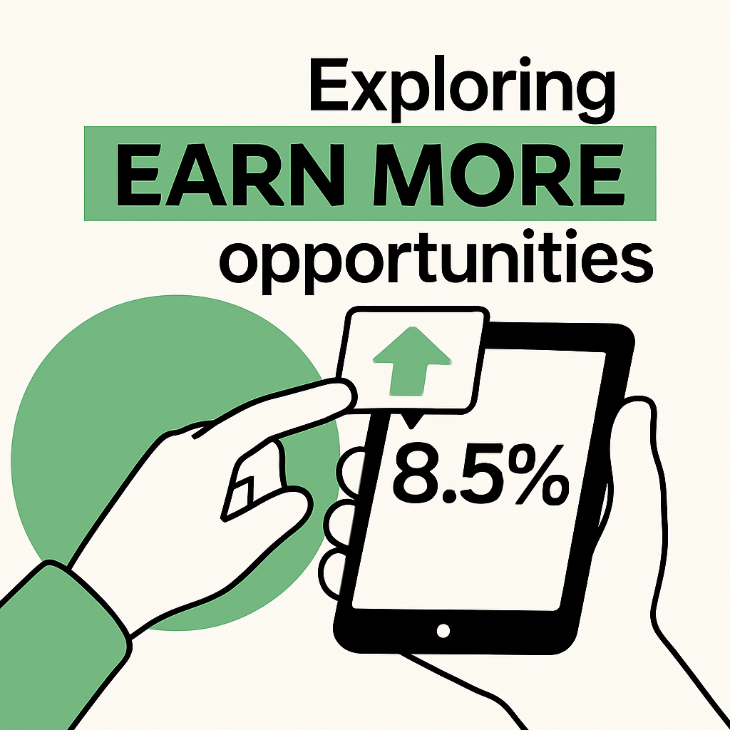 Stylized promotional graphic featuring a hand interacting with a tablet, emphasizing earnings growth. Ideal for financial services or business development marketing.