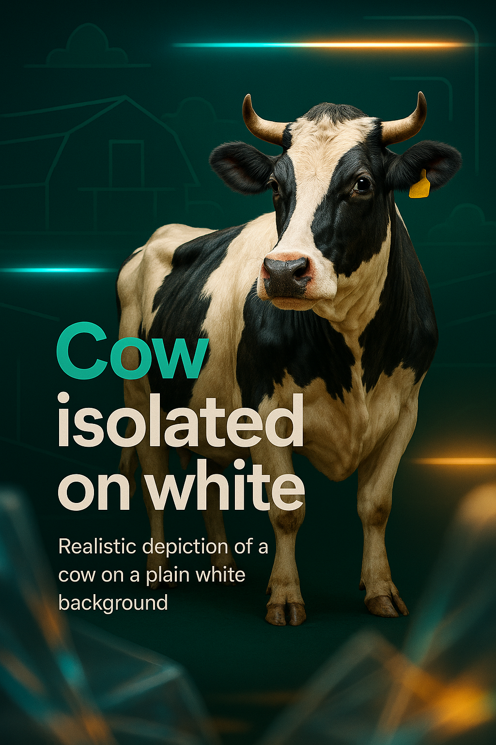 A lifelike depiction of a cow set against a plain white background, showcasing detailed features and a modern design. Ideal for agricultural or educational content.