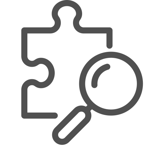 outline simple icon: game, investigation, magnifying glass, piece, puzzle