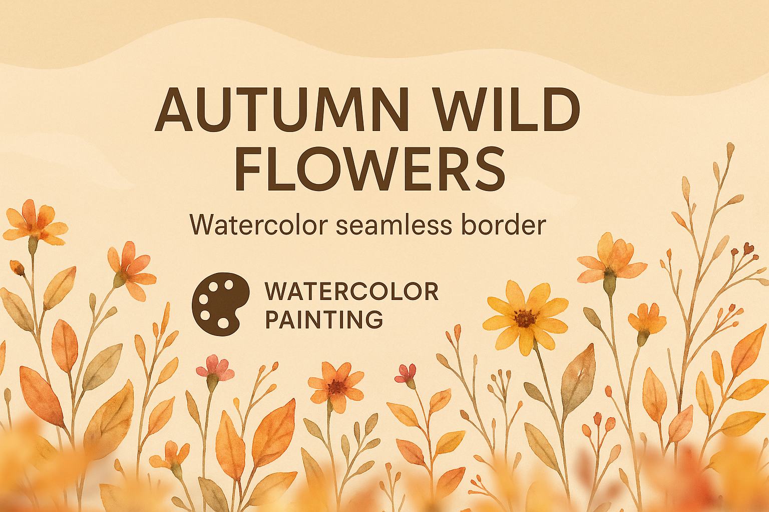 /Collection: /by davooda/Type: PNG/Charming watercolor seamless border featuring autumn wildflowers, perfect for seasonal designs, invitations, or crafting projects. It conveys a warm, inviting seasonal theme.