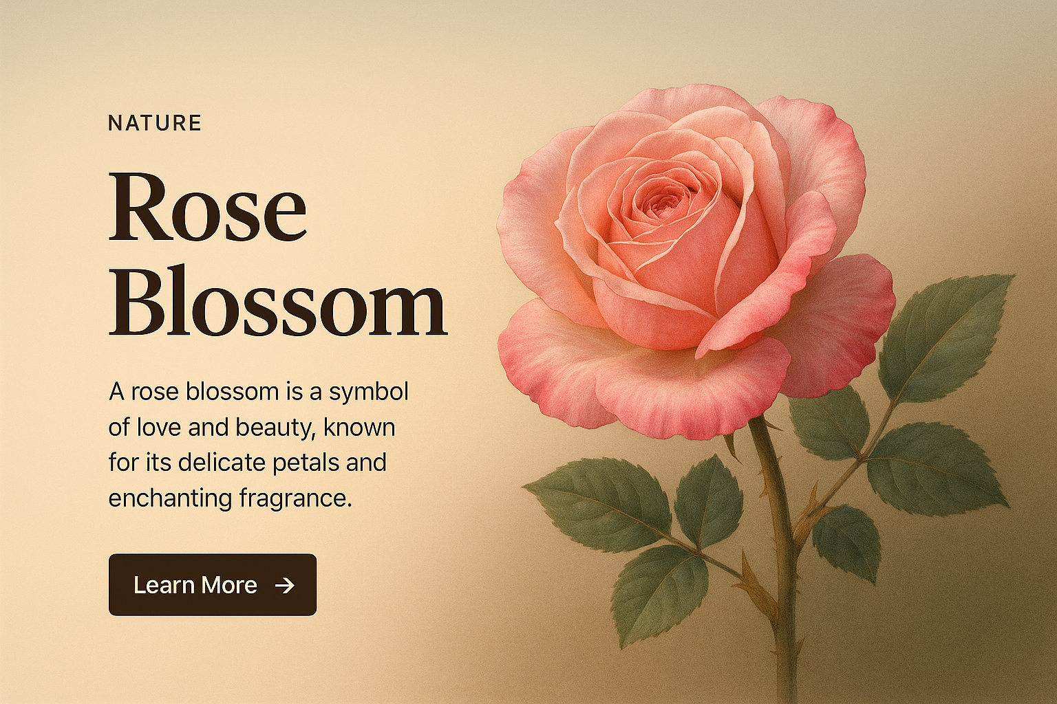 Realistic Rose Blossom Illustration with Text and Action Button