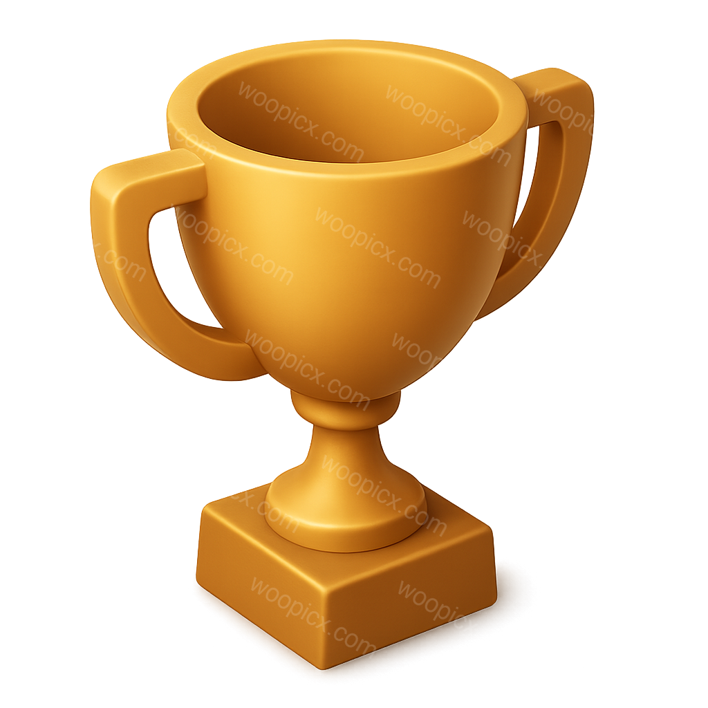 A shiny, golden 3D trophy icon with a smooth finish, featuring two handles and a square base, symbolizing victory and achievement.