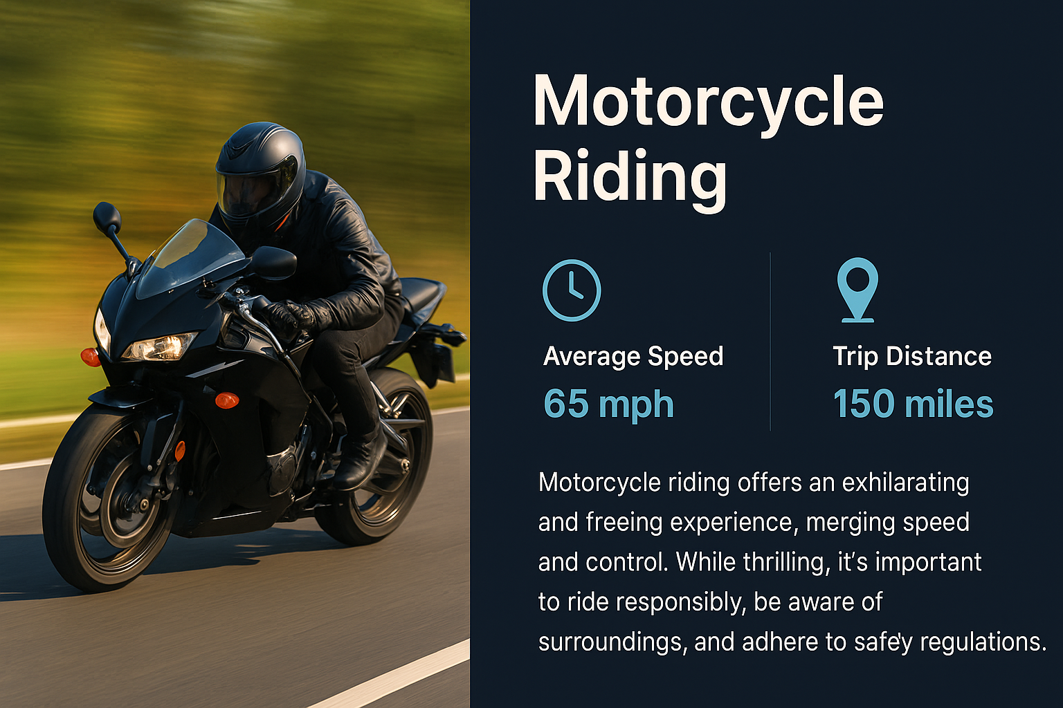 /Collection: /by davooda/Type: PNG/An informative graphic featuring motorcycle riding statistics, including average speed and trip distance. This design is ideal for educational content or motorcycle safety awareness.