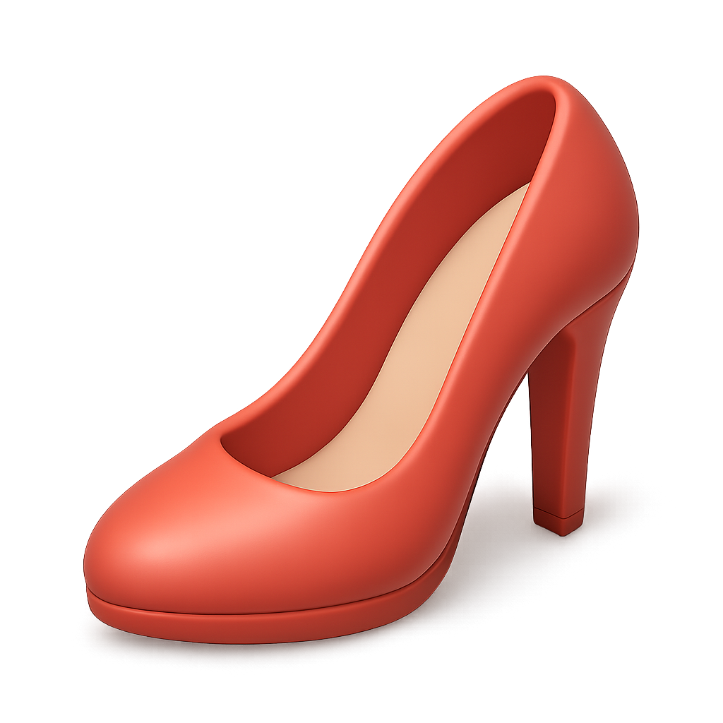 This image features a sleek, isometric 3D representation of a high heel shoe in a vibrant coral color, showcasing a smooth texture and elegant design.