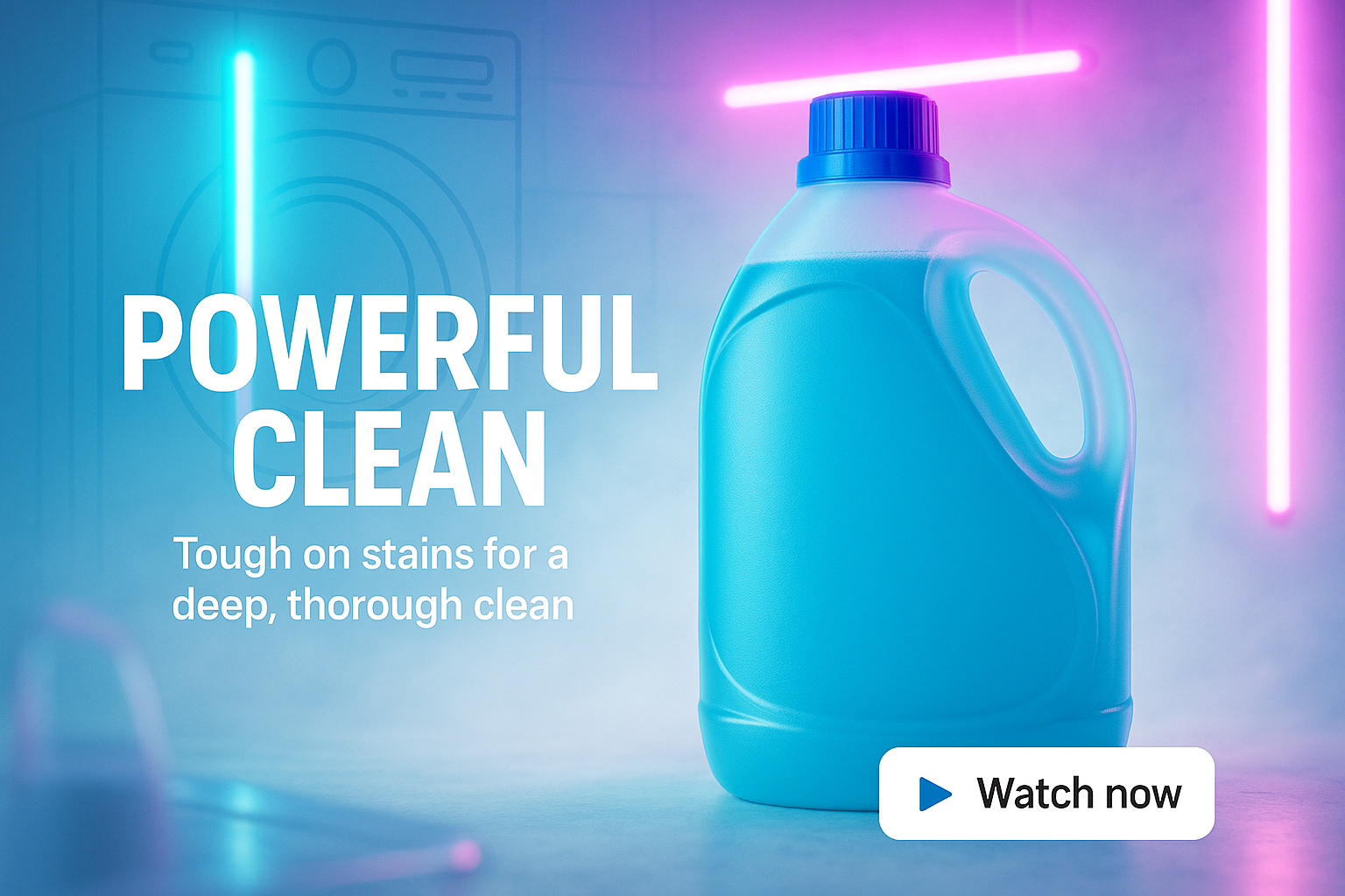 Vibrant promotional image showcasing a laundry detergent bottle with a modern aesthetic, ideal for advertising cleaning products in digital marketing.