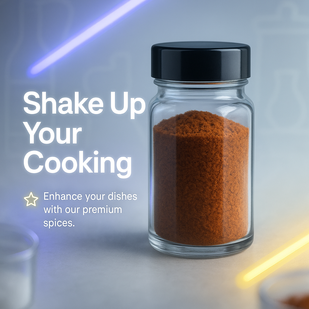 A visually appealing promotional image featuring a spice jar designed to enhance culinary experiences, making it perfect for food-related marketing campaigns.