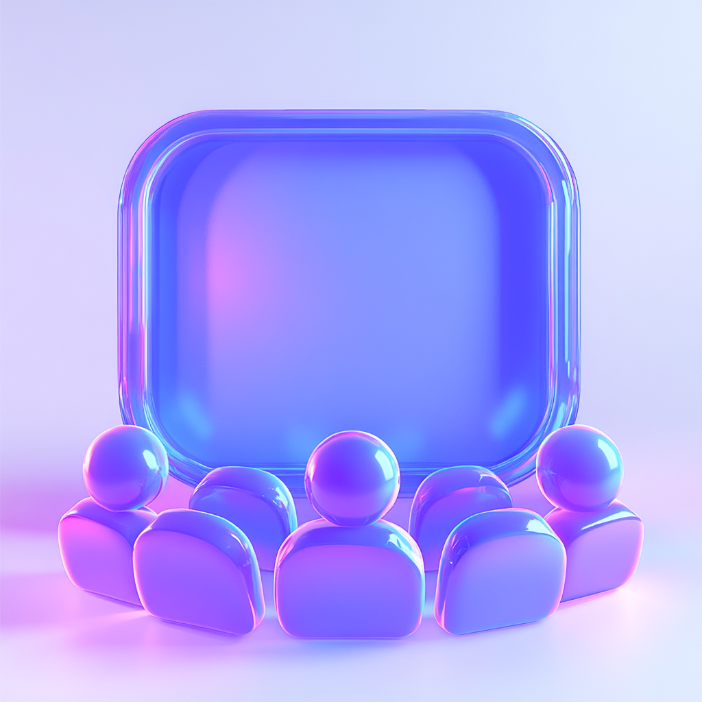 A vibrant 3D rendering showcasing stylized figures in front of a glowing display screen. This modern design is ideal for presentations or virtual events.