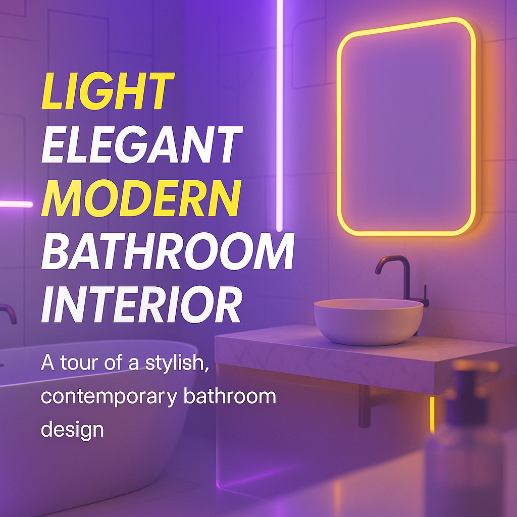 Stylish interior shot of a modern bathroom featuring elegant lighting and contemporary design elements, ideal for home decor inspiration.