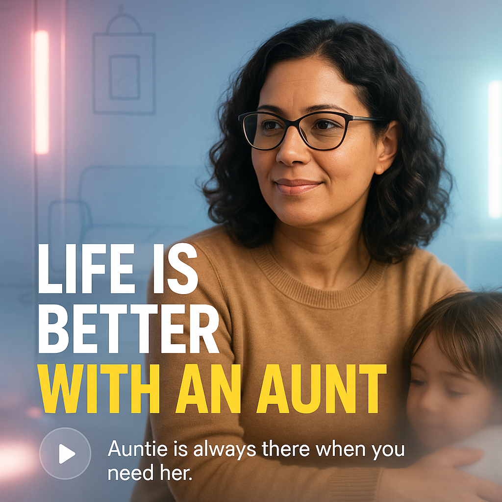 Engaging social media post featuring a warm image of a woman with child, promoting the importance of aunts with modern design elements. Ideal for family-themed content.