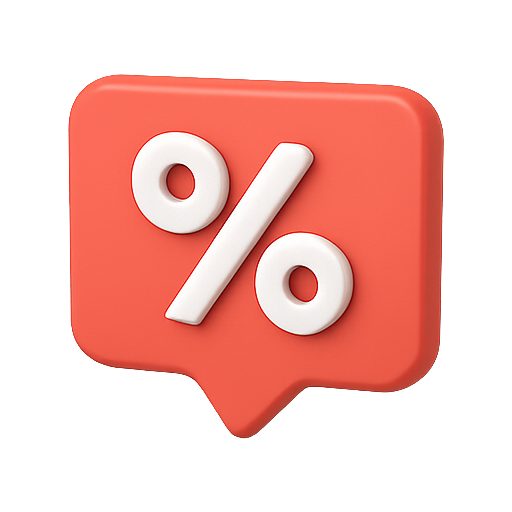 Stylized 3D icon of a percentage symbol within a speech bubble, showcasing a modern and playful design. Ideal for promotional or financial contexts.