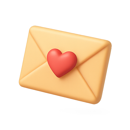 A three-dimensional, stylized icon of an envelope with a heart symbol, representing affection and communication. Ideal for romantic themes in digital design.