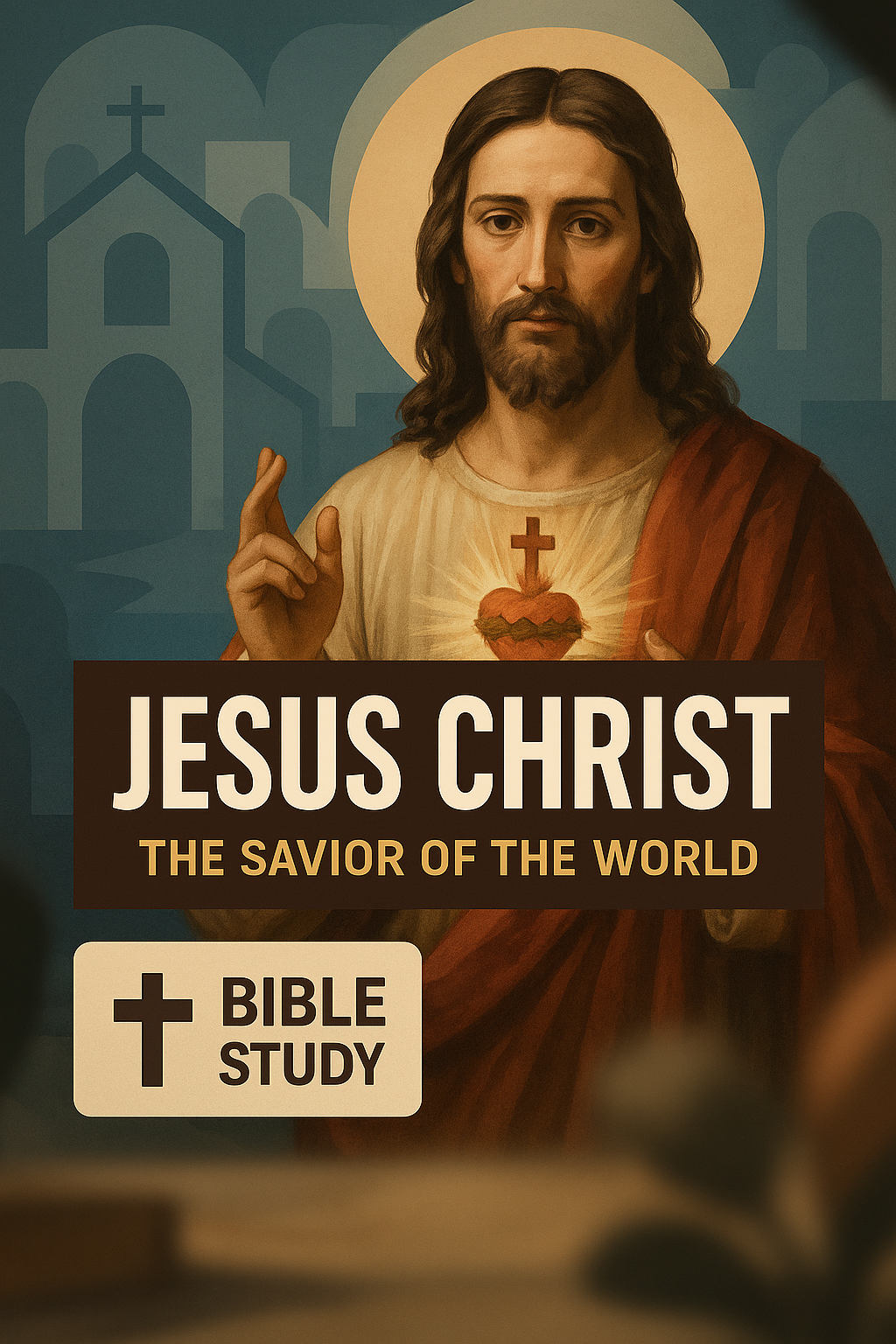 /Collection: , /by davooda/Type: PNG/A religious-themed graphic featuring an illustration of Jesus Christ, designed for Bible study purposes. The artwork combines traditional elements with modern design, appealing to faith-based audiences.