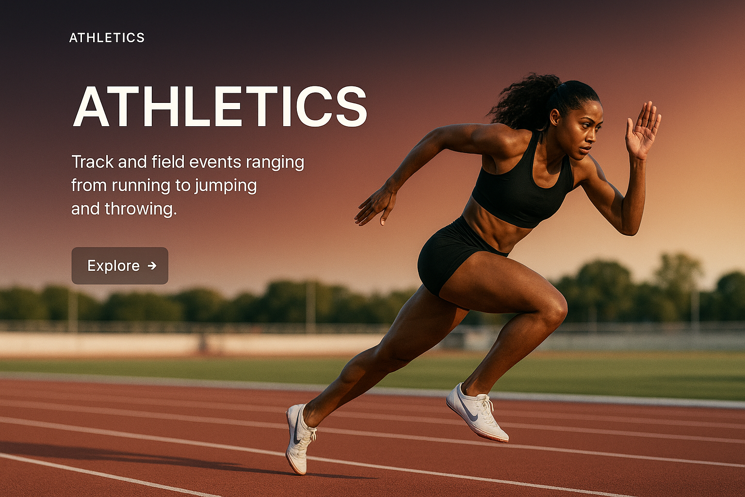 /Collection: /by davooda/Type: PNG/A stylish web page design featuring a runner in motion, showcasing athletics. The gradient background enhances focus on the action, with clear text and an action button.