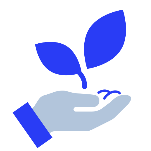polish-blue simple icon: eco fiendly, hand holding plant, plant, growth, hand
