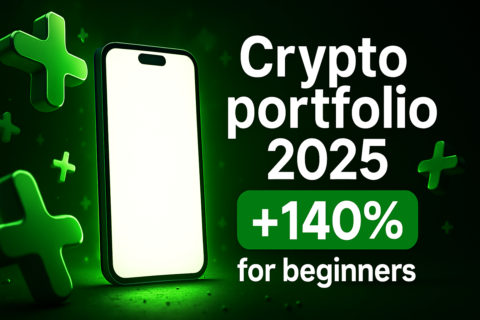 /Collection: /by Sergey Leonov/Type: PNG/Engaging promotional graphic featuring a smartphone with a bold announcement about crypto portfolio growth, designed to attract beginner investors in the digital finance space.