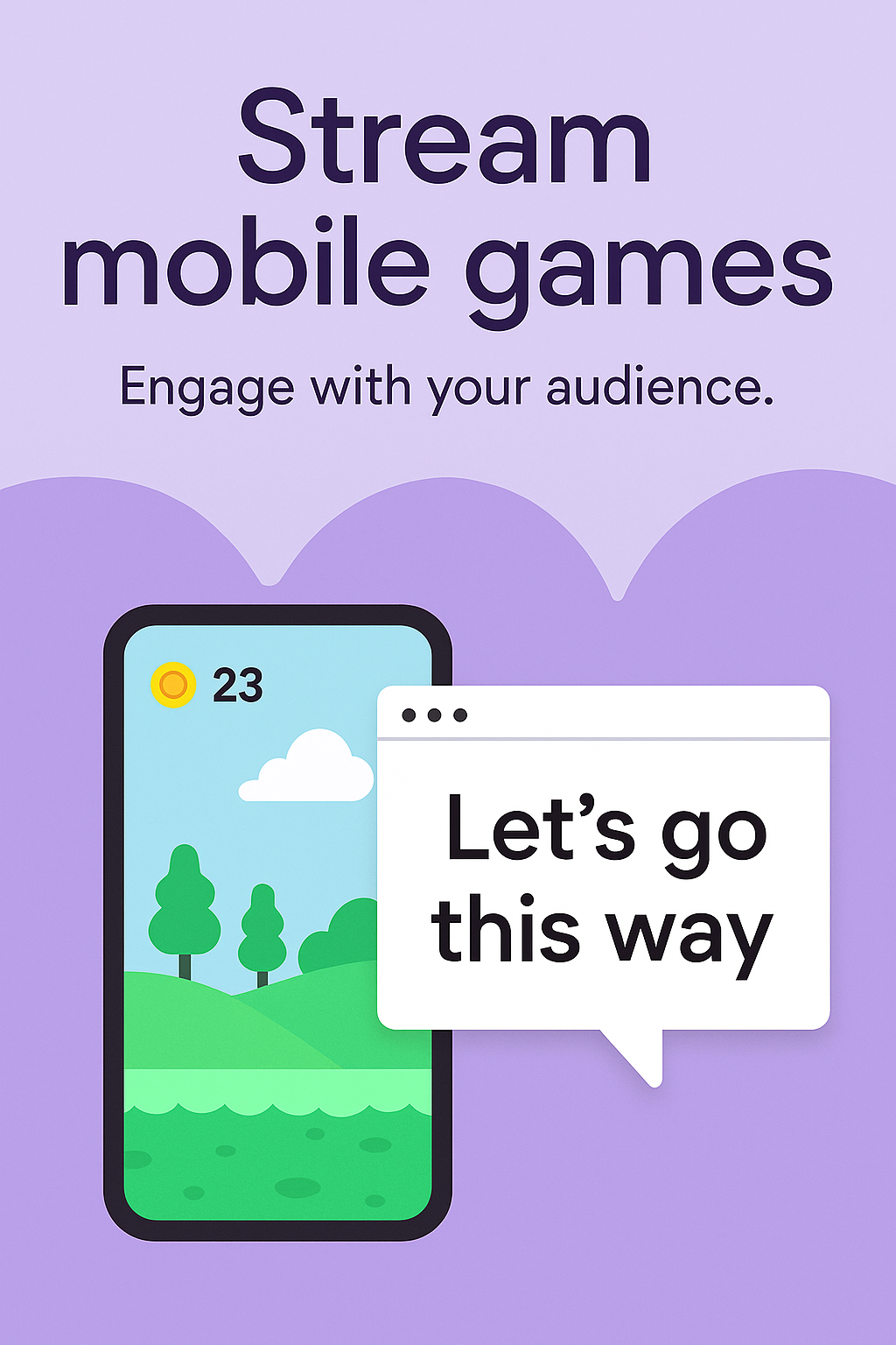Vibrant promotional graphic showcasing mobile game streaming with engaging visuals. Ideal for social media or marketing campaigns aimed at gamers.