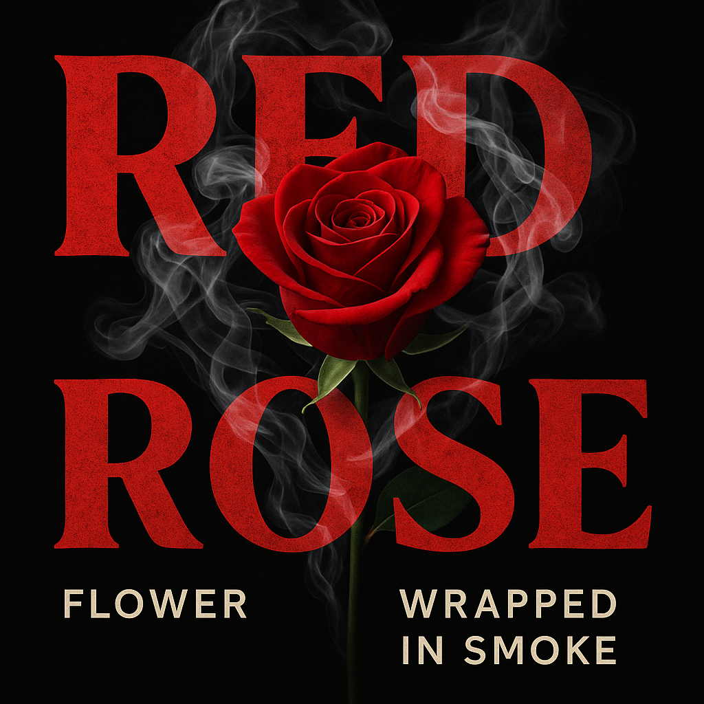 Stylish Graphic Featuring a Red Rose and Elegant Typography