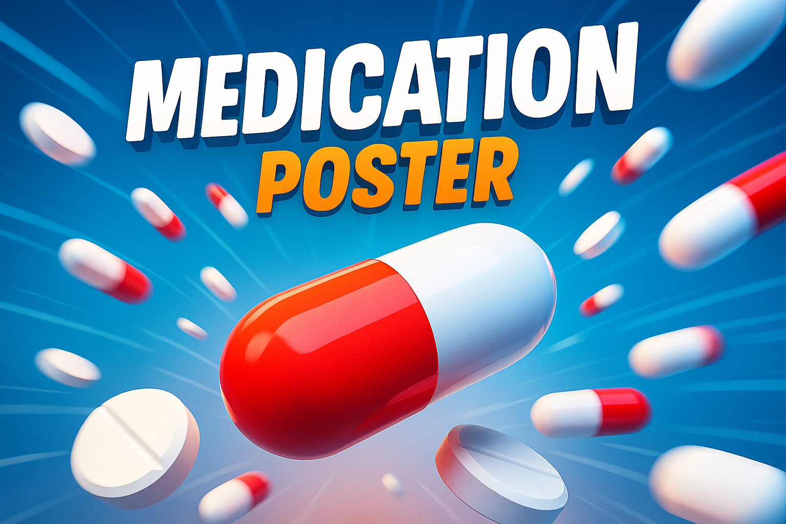 Dynamic Medication Poster with Bold Typography and 3D Elements