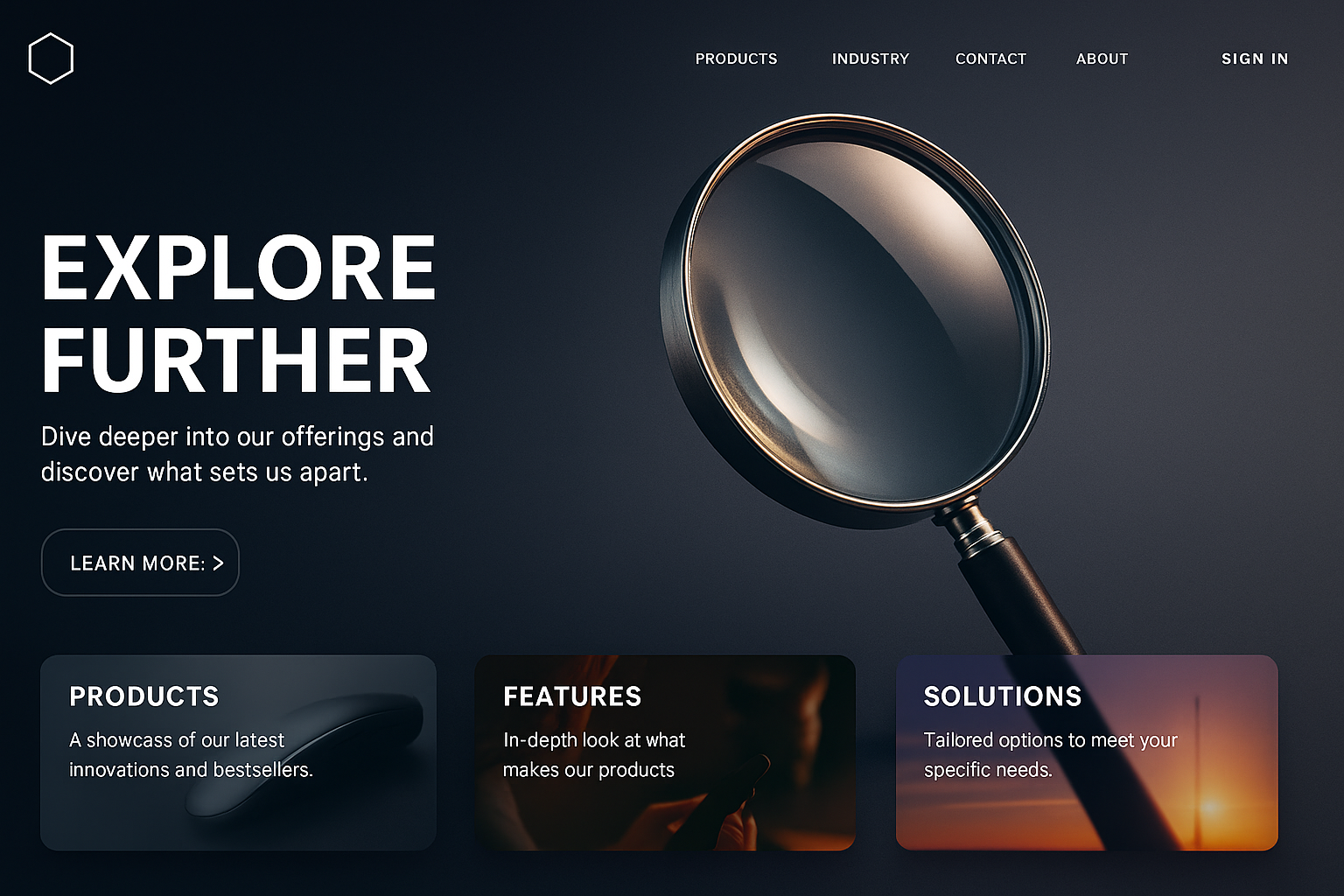 Futuristic Landing Page Design with Magnifying Glass