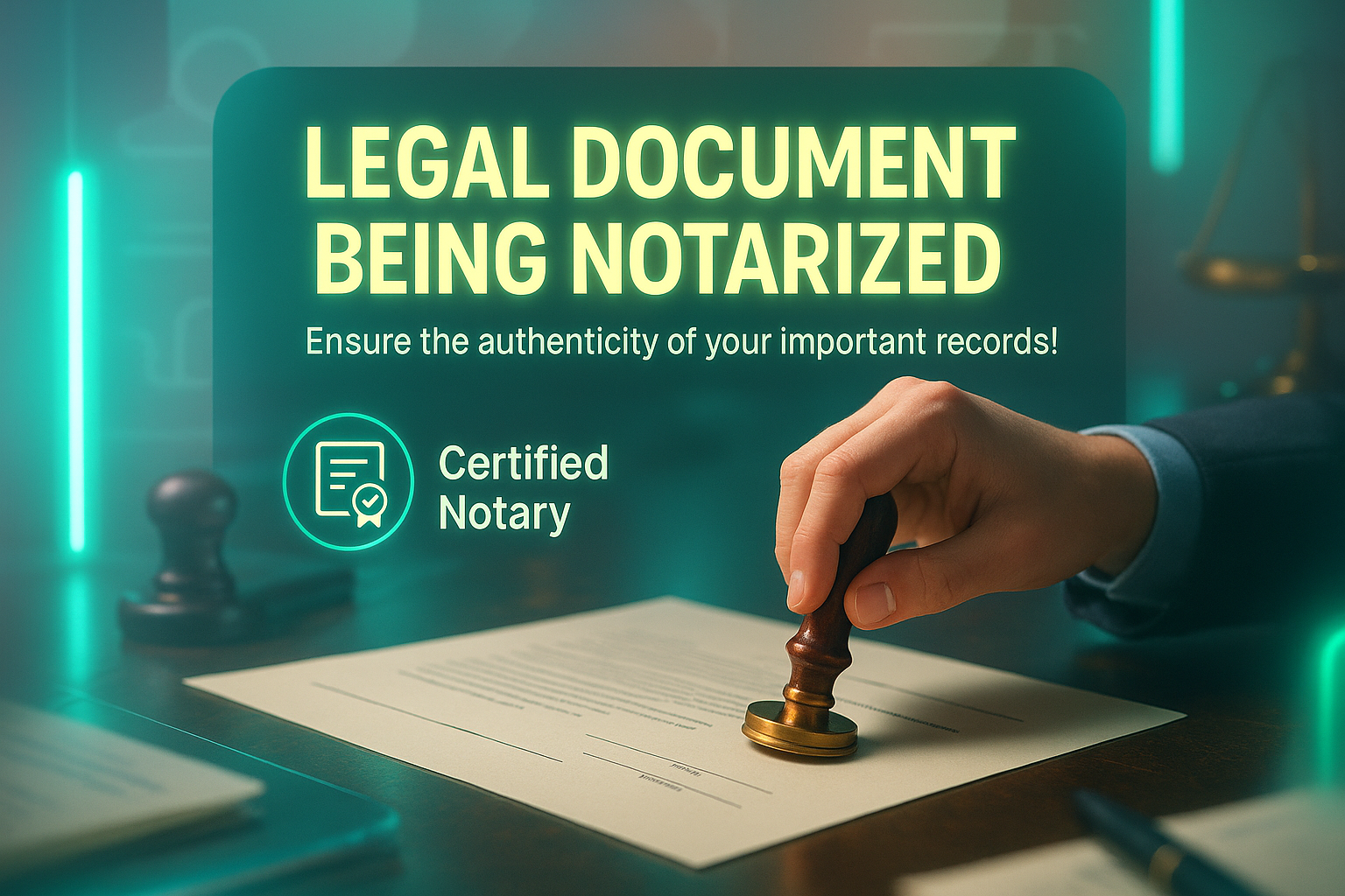 A visually engaging image depicting the notarization of a legal document with a focus on authenticity, ideal for legal services or educational content.