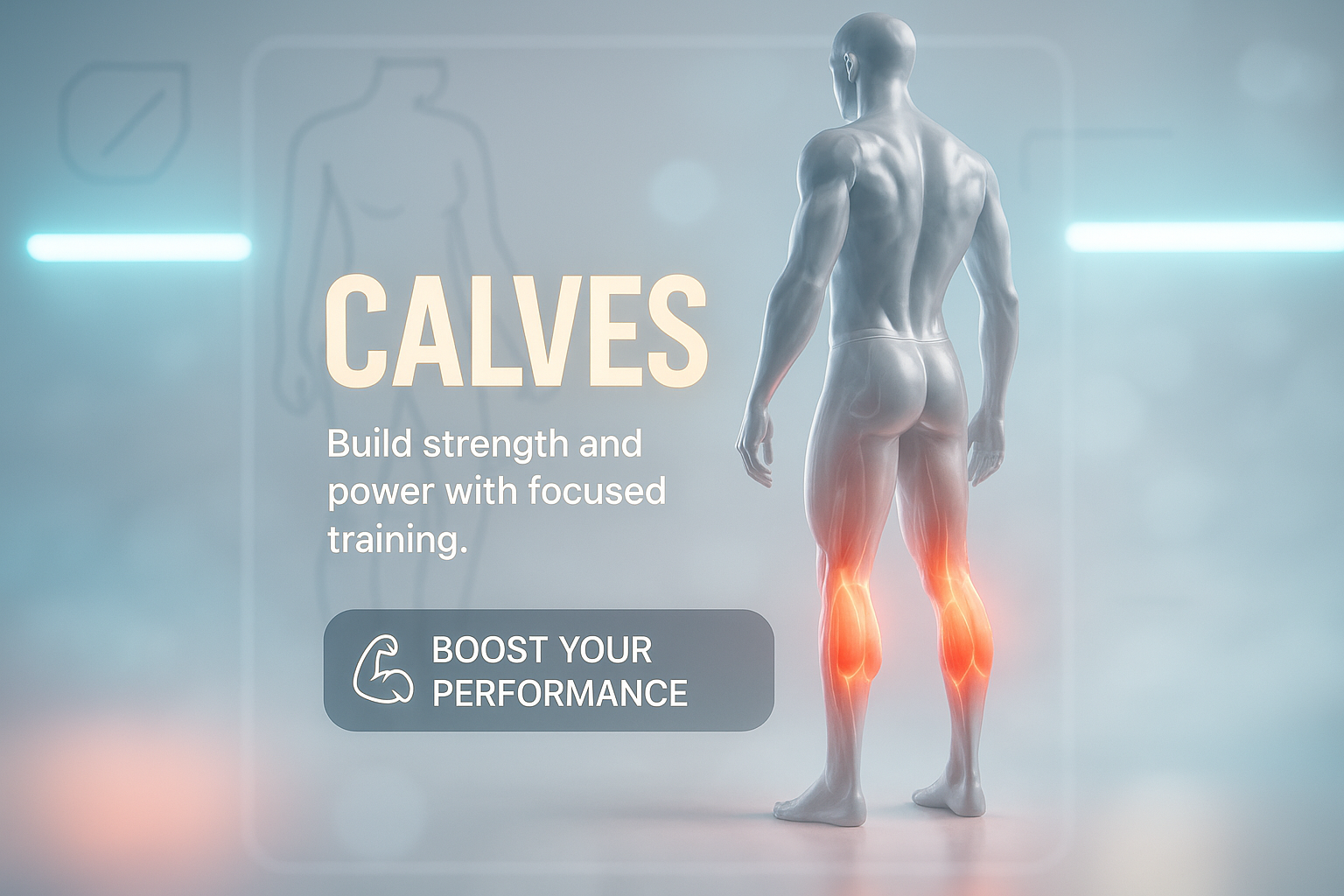 Informative fitness graphic highlighting the importance of focused training for calves. Features a sleek, modern design ideal for gym promotions or health blogs.