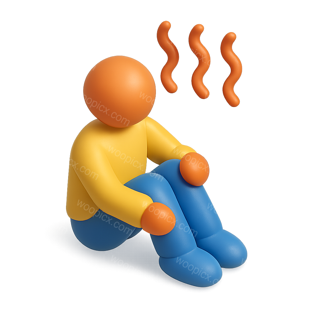 This image features a 3D icon of a stylized person sitting down, with heat waves illustrated above. The character is depicted in vibrant colors, showcasing a warm, inviting tone.