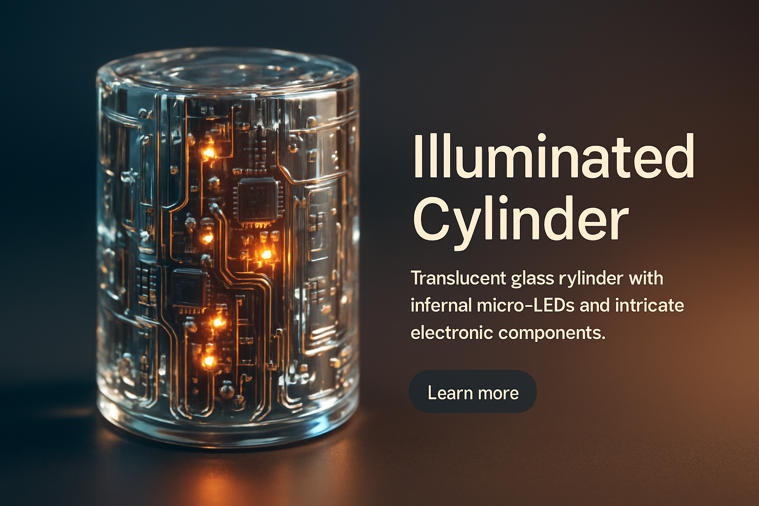 /Collection: /by davooda/Type: PNG/A close-up view of a translucent glass cylinder, showcasing intricate electronic components and glowing micro-LEDs. The design features a high-tech aesthetic with a soft gradient background.