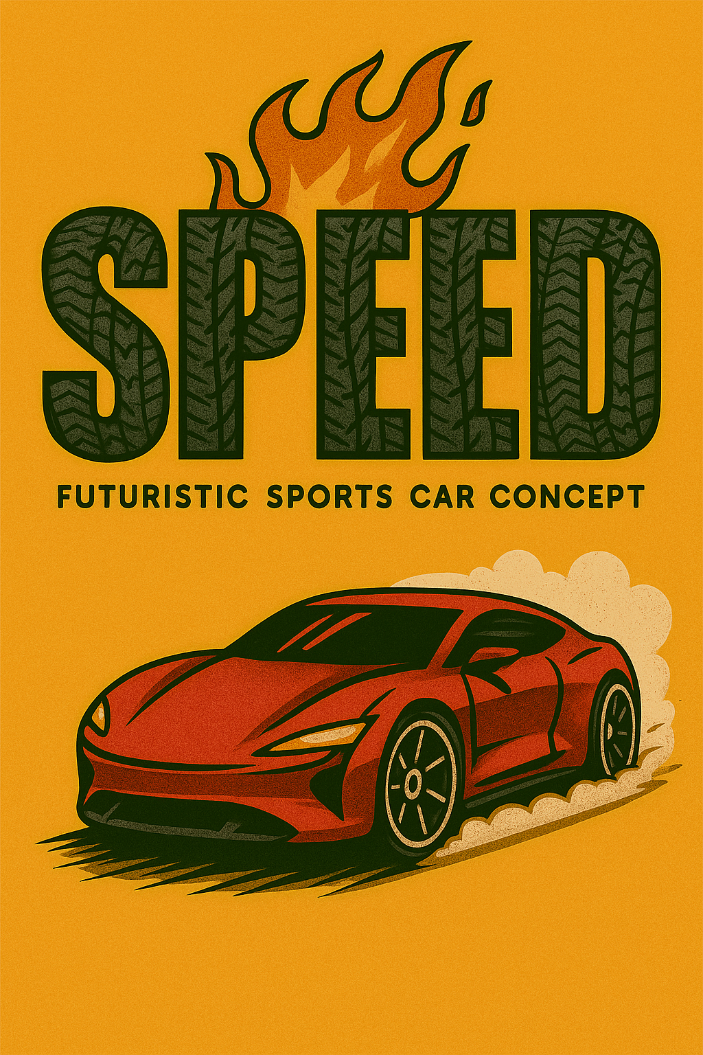 Futuristic Sports Car Concept Illustration with Bold Typography