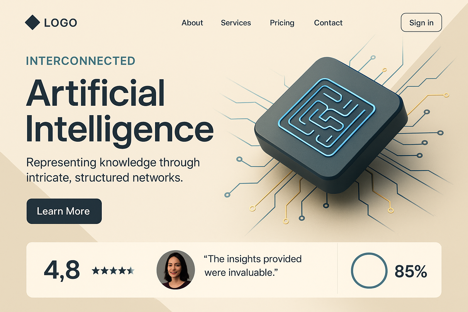 Layered 3D Landing Page Design for AI Interconnectivity