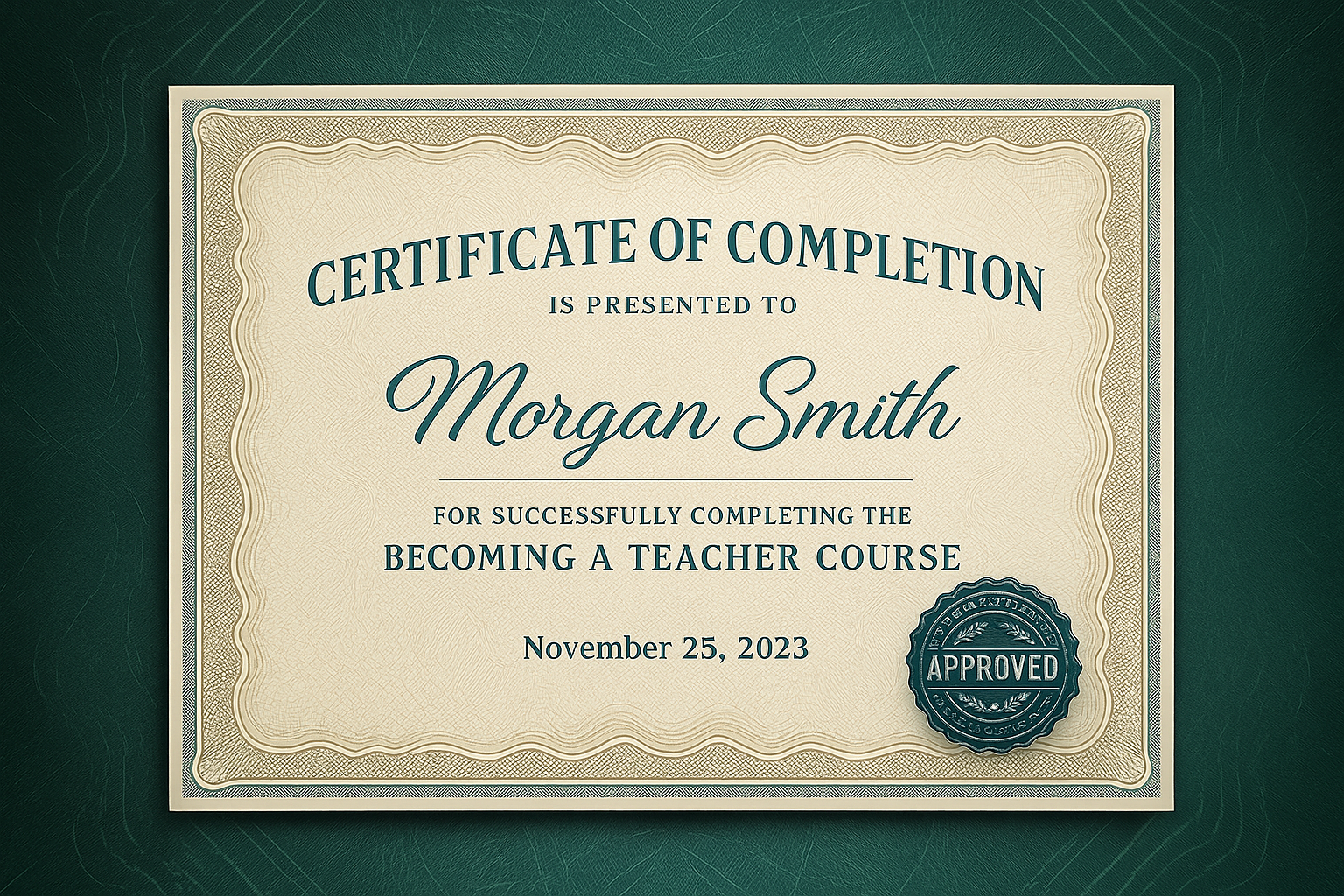 Stylish certificate of completion featuring an ornate border and seal, ideal for educational achievements or professional training recognition.