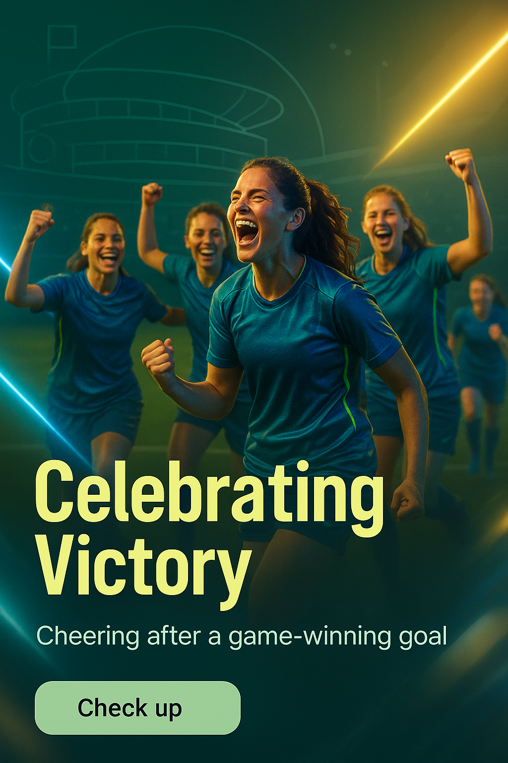Dynamic Sports Celebration Graphic Featuring Female Soccer Players