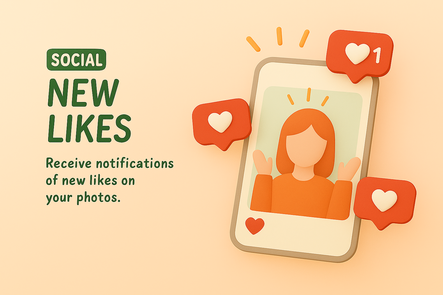 3D-style illustration depicting social media notifications for new likes, featuring a smartphone and vibrant icons, ideal for digital marketing and social media campaigns.