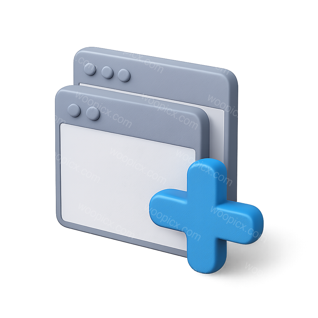 Stylized 3D Overlapping Windows Icon with Plus Sign