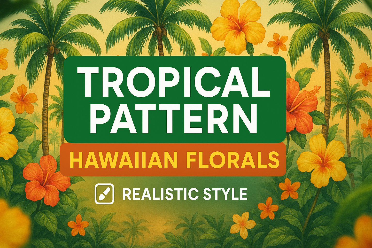 /Collection: /by davooda/Type: PNG/A realistic tropical pattern showcasing vibrant Hawaiian florals, ideal for summer-themed designs or tropical decor. The lush greenery and colorful flowers create a cheerful atmosphere.